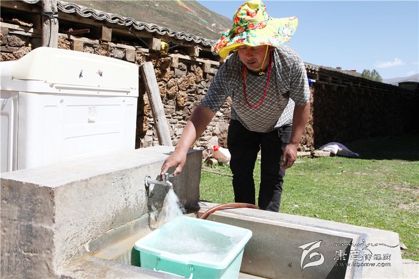 這是一幢位于半山坡上的漂亮藏房,這是一座寬敞干凈的農(nóng)家院落。正在院子里的水龍頭前洗衣服的布窮拉,一面羞紅著臉招呼著我們,一面將洗衣粉撒進洗衣機里,高速運轉(zhuǎn)的洗衣機不時拋出幾朵洗衣粉泡沫。說起自來水,不善言辭的布窮拉確實感觸尤深:“我家附近只住了4戶人家,根本就沒想過這輩子還能用上自來水。去年鄉(xiāng)上在實施第二批人口安全飲水工程項目時,居然也把我們幾家規(guī)劃進去了。當時,我以為只是說說而已,沒想到20來天后施工隊果真就把水管鋪設到了我家。通水那天,我們幾家人還特意慶祝了一盤。如今,我再也不用每天往返到色曲河背水了,我家的背水塑料桶隨之也就‘下崗’了。”
