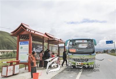 甘孜縣公交車開(kāi)進(jìn)鄉(xiāng)村。