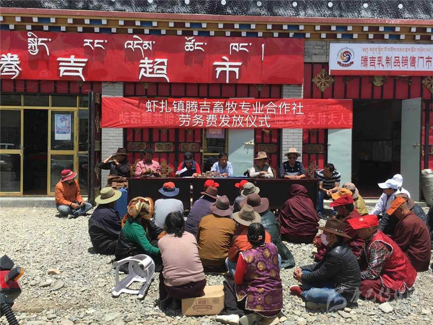 “精準扶貧”貴在“精準”,精確找準“貧困癥結(jié)”,準確“對癥下藥”;由于塔須村惡劣的自然環(huán)境制約,村民們還過著古老傳統(tǒng)的游牧生活,導致塔須村社會、經(jīng)濟、文化發(fā)展相對滯后,全村無集體經(jīng)濟產(chǎn)業(yè),屬于我州貧困村中的“貧中之貧”,以往傳統(tǒng)的扶貧措施猶如“灑胡椒面”,治標不治本;“授人以魚,不如授人以漁”,為讓塔須村能建立村集體產(chǎn)業(yè),村民們能掌握一門致富手藝,州水務(wù)局結(jié)合塔須村實際,多次派遣工作組深入塔須村,了解貧困戶生活現(xiàn)狀、致富愿望,聽取村兩委干部建言,形成專題脫貧報告;鑒于牧民致富愿望強烈,村干部建言獻策,在州水務(wù)局的積極協(xié)調(diào)下,在蝦扎鎮(zhèn)黨委、政府的倡導下,經(jīng)石渠縣人大牽頭,通過州級各聯(lián)系單位、駐村幫扶工作組和村兩委的努力,整合各方人力、物力、財力,團結(jié)協(xié)作,于2016年3月成立了“石渠縣蝦扎騰吉畜牧專業(yè)合作社”,并選舉出9名致富能手為騰吉專業(yè)合作社理事人選。“騰吉合作”乃飛騰吉祥之意,寓意著牧民群眾齊心協(xié)力,共奔小康。
