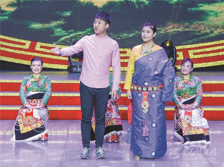 歌曲聯(lián)唱《百花爭艷》,是演出中第一個讓觀眾們大呼過癮的節(jié)目,年僅5歲的澤仁拉姆用一首藏族原生態(tài)歌曲《故鄉(xiāng)》,讓全場觀眾耳目一新。緊隨而來的藏族山歌《家鄉(xiāng)美》、漢族歌曲《和諧大家園》、回族歌曲《花兒與少年》、彝族歌曲《 尼雨尼杰》將音樂的魅力逐級顯現(xiàn),最后在經(jīng)典歌曲《愛我中華》中急速升華。6首歌曲風(fēng)格各異,卻又一氣呵成,不僅集中展示了我州藏、漢、回、彝四個民族的藝術(shù)風(fēng)采,還生動展現(xiàn)了我州各族人民其樂融融、團結(jié)進步的和諧面貌。
