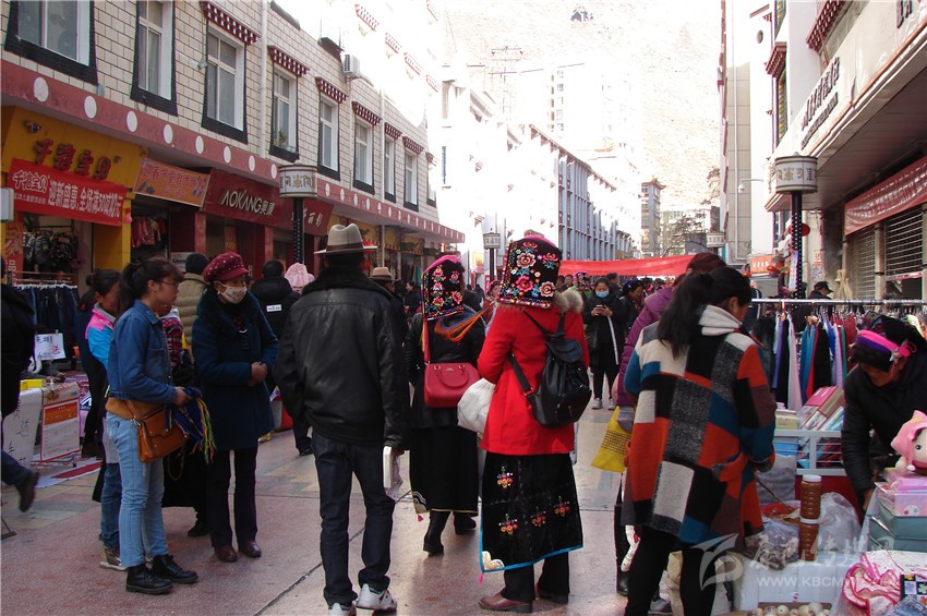 走在街上,一幅熱鬧的場景映入眼簾,熙熙攘攘的人群緩緩蠕動(dòng),來往行人大包小包的東西相互碰撞,市場內(nèi)叫賣聲、討價(jià)聲與商店歡快的音樂交織在一起,一大早街上就有幾輛工具車裝滿了飲料、糖果等副食品,老板與顧客在討價(jià)還價(jià)。家家樂超市收銀員一邊忙著收錢找零一邊對筆者說:“這段時(shí)間生意真好,老百姓來買的多,且量還不少?!眮淼讲耸袌龈菬狒[非凡,生食店、熟食店、糖果鋪前來購買年貨的顧客擠得滿滿的,大人小孩,僧人牧民各自選著自己想買的年貨,沉甸甸的年貨提在手上喜在眉梢。 (尹東云)