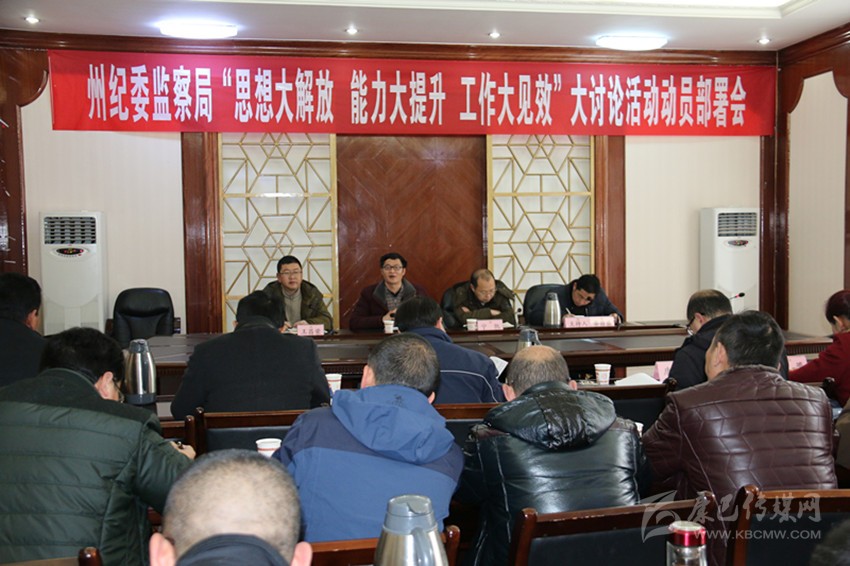 本網(wǎng)訊(記者 宋志勇)2月24日下午,州紀(jì)委監(jiān)察局召開(kāi)“思想大解放、能力大提升、工作大見(jiàn)效”大討論活動(dòng)動(dòng)員部署會(huì)。會(huì)議專(zhuān)題傳達(dá)學(xué)習(xí)了州委召開(kāi)的“思想大解放、能力大提升、工作大見(jiàn)效”大討論活動(dòng)會(huì)議精神和開(kāi)展“思想大解放、能力大提升、工作大見(jiàn)效”大討論活動(dòng)實(shí)施方案,對(duì)全面找差距、挖根源,抓落實(shí)、重實(shí)效進(jìn)行了動(dòng)員部署。