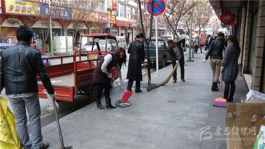 干部職工打掃環(huán)境衛(wèi)生責(zé)任區(qū)域。