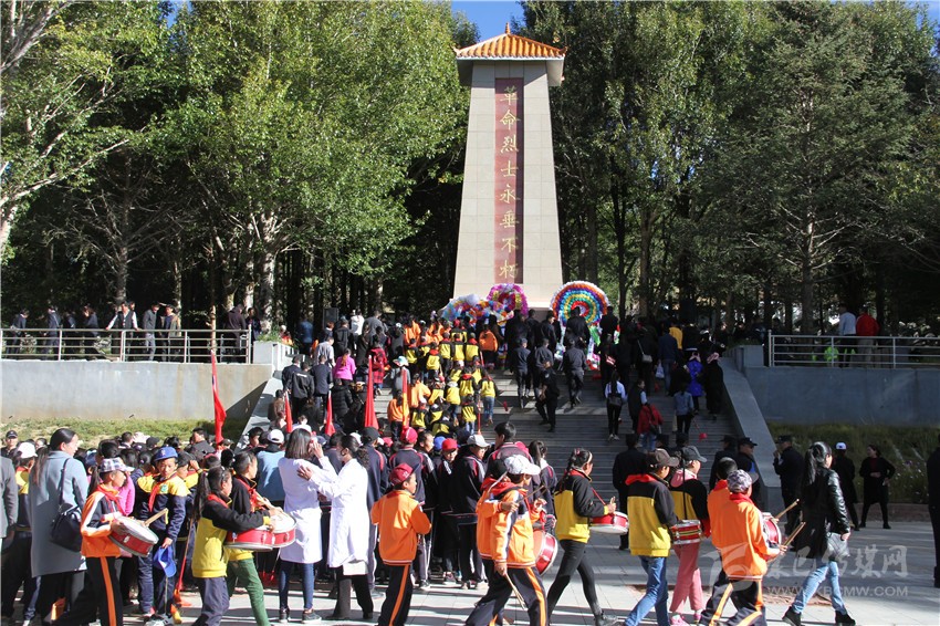 整個公祭活動莊嚴、肅穆而隆重,全體人員奏唱《國歌》,繼而少先隊代表獻唱少先隊歌,向烈士紀念碑敬獻花圈,深切表達對革命先烈的緬懷敬仰之情。