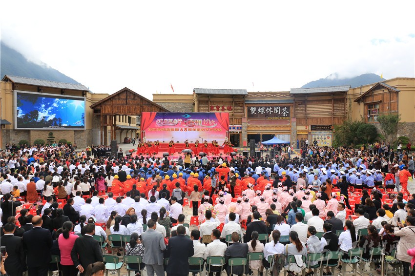 文藝演出在雄壯的國歌聲中拉開了帷幕,傳統(tǒng)藏戲、藏族歌舞、詩歌朗誦、樂隊演奏等多種形式的文藝節(jié)目,不但給祖國母親獻上了一份特別的68歲“生日蛋糕”,也為喜迎黨的十九大召開營造了良好氛圍。歌聲陣陣、舞蹈連連,朗誦激昂、鼓樂齊鳴,把演出一次又一次推向高潮,把歡樂一陣又一陣帶給觀眾。大家揮舞手中的黨旗、國旗,表達自己的喜悅之情。文藝匯演持續(xù)近兩個小時,在嘹亮動聽、旋律激昂的《再唱山歌給黨聽》的歌聲中落下帷幕。