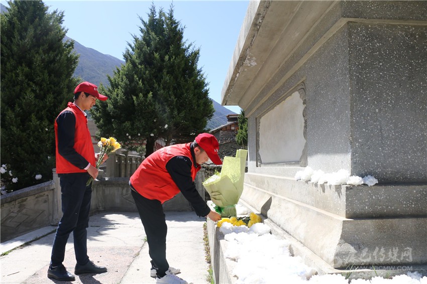 “圣潔尚巴”服務(wù)隊(duì)到烈士墓祭奠烈士。