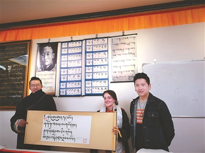 本網(wǎng)訊 前段時間,一篇微信文章《天空之城新玩法,老外學(xué)寫藏書法》刷爆了甘孜的微信朋友圈,法國女孩理塘學(xué)藏文書法的消息傳遍大街小巷。如今,這個叫寶林的女孩已經(jīng)回到法國,她給教授她藏文書法的益西老師打來電話,感謝對她的教授。