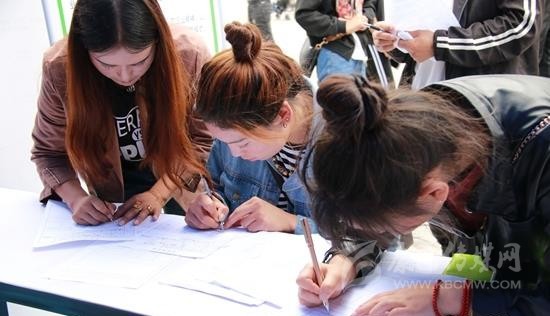 在現(xiàn)場,一名手拿“得榮縣人社局”牌子的年輕人引起了記者的注意?!拔沂堑脴s縣人才交流和就業(yè)服務局的一名工作人員,這次我們縣上有20余人報名,大都是剛畢業(yè)的學生,但由于路途遙遠等原因,今天只來了12人,我是來給他們帶隊的,希望功夫不負有心人,他們都能應聘到自己心儀的崗位。”這名叫徐懿的年輕人告訴記者。