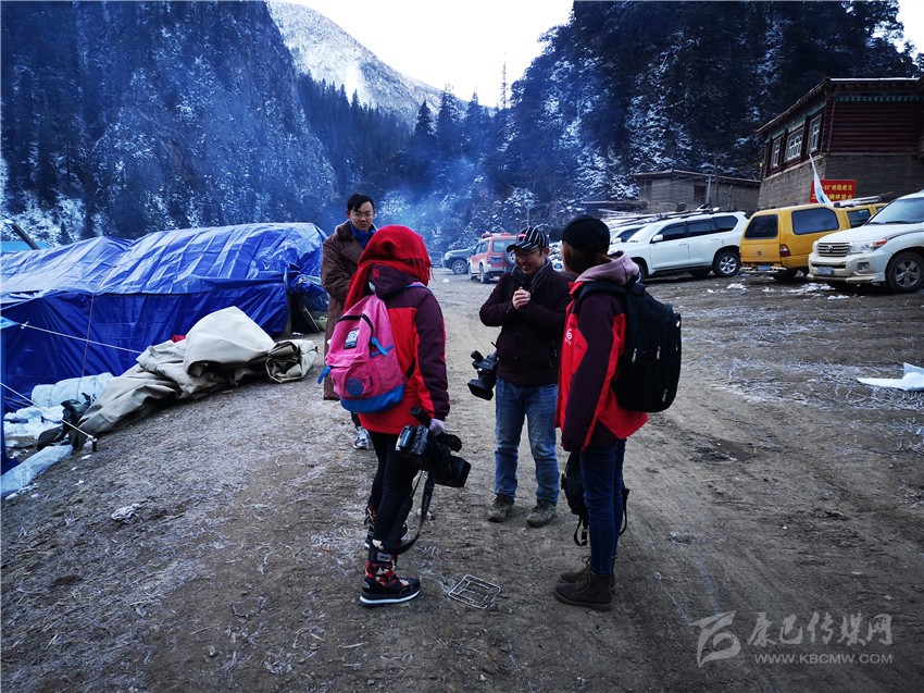 11月6日晚,甘孜日報記者馬建華、張磊、余秋林和州廣播電視臺副臺長何良忠、記者洛嘎、肯布及白玉電視臺記者連夜趕赴則巴村中轉(zhuǎn)站。26公里的崎嶇山路,冰雪道危險重重,坡陡彎急,司機憑借經(jīng)驗在坡度60度以上的暗冰道上行駛,經(jīng)過兩個多小時的艱難行進,采訪組終于入住前方救災(zāi)組搭建的救災(zāi)帳篷。深夜,大雪紛揚,帳篷里寒氣襲人。帳篷四周,狗叫聲不止,一條狗鉆進帳篷,蜷縮在記者床鋪旁邊,因為太冷,記者們不忍心將它驅(qū)離。11月7日,白格堰塞湖庫容量達到2.71億立方米,白格堰塞湖形勢嚴峻,嚴重威脅我州金沙江下游群眾生命財產(chǎn)安全。一大早,10多公分厚的大雪扮美了村莊,卻給機具、救災(zāi)物資、救援人員進出等帶來極大困擾?!拔覀兊耐诰驒C司機在山上被大雪困了一夜,徒步到中轉(zhuǎn)站休息了三個小時又到山上去作業(yè)了,你們應(yīng)該去采訪一下?!敝菡敝蓍L何康林說。