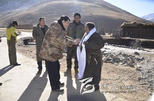 在鄉(xiāng)長(zhǎng)伍金澤仁和村“兩委”陪同下,工作組克服路途勞頓和高原缺氧等困難,深入火燃、絨青、白日一村、白日二村等村寨,對(duì)全鄉(xiāng)三老干部、農(nóng)村特困戶開(kāi)展走訪慰問(wèn),在送去慰問(wèn)金和慰問(wèn)品的同時(shí),給他們送去了黨和政府的關(guān)懷與溫暖,向他們致以新春祝福,并希望老干部們對(duì)全鄉(xiāng)經(jīng)濟(jì)社會(huì)發(fā)展一如既往地關(guān)心、關(guān)注和支持。來(lái)到白日一村老黨員澤擁家定居房,屋外雖然寒風(fēng)料峭,屋里卻是暖意融融,當(dāng)工作組將慰問(wèn)金送到澤擁手里時(shí),她緊緊握住秘書(shū)長(zhǎng)的手,動(dòng)情地說(shuō):“感謝黨組織還惦記著我們這些老同志,感謝黨委政府對(duì)我們的關(guān)懷。”看到德西的身體還十分健朗,工作組成員高興地他說(shuō):“老干部是我們黨和國(guó)家的財(cái)富,感謝你們過(guò)去為國(guó)家、社會(huì)做出的貢獻(xiàn),黨和國(guó)家不會(huì)忘記你們。”工作組指出,近年來(lái),我州經(jīng)濟(jì)社會(huì)發(fā)生了翻天覆地的變化,各項(xiàng)事業(yè)都取得了長(zhǎng)足進(jìn)步,廣大農(nóng)牧民的生活水平也在不斷提高,這些成績(jī)的取得,是州委、州政府的正確領(lǐng)導(dǎo)和全州人民共同努力的結(jié)果,也是廣大老干部打下堅(jiān)實(shí)基礎(chǔ)的結(jié)果,老干部們創(chuàng)下的業(yè)績(jī),功不可沒(méi),黨和政府及廣大老百姓永遠(yuǎn)銘記。走訪慰問(wèn)中,工作組詳細(xì)了解每一戶特困戶的生產(chǎn)生活情況,鼓勵(lì)他們樹(shù)立戰(zhàn)勝困難的信心,爭(zhēng)取早日脫貧致富,并要求鄉(xiāng)黨委、政府和村“兩委”要關(guān)心好他們的生產(chǎn)生活,幫助他們解決實(shí)際困難。工作組強(qiáng)調(diào),鄉(xiāng)黨委、政府和村“兩委”班子要堅(jiān)持以人為本,創(chuàng)新工作思路,把改善民生放在突出位置;認(rèn)真落實(shí)國(guó)家各項(xiàng)惠民富民政策,著眼群眾所急所盼,多做得民心惠民生的實(shí)事和雪中送炭的好事;加強(qiáng)制度建設(shè),堅(jiān)持依法辦事,推進(jìn)民主治理,確保村務(wù)公開(kāi);積極引導(dǎo)群眾解放思想、轉(zhuǎn)變觀念,逐步養(yǎng)成崇尚科學(xué)、講究衛(wèi)生、少生快富的好習(xí)慣;發(fā)揚(yáng)艱苦奮斗、苦干實(shí)干的精神,依托本地實(shí)際,積極調(diào)整產(chǎn)業(yè)結(jié)構(gòu),最大限度幫助困難群眾實(shí)現(xiàn)增效增收。工作組要求鄉(xiāng)黨委政府和村“兩委”班子盡快啟動(dòng)州政協(xié)機(jī)關(guān)干部職工為特困戶澤志瑪捐資的住房建設(shè)工程,爭(zhēng)取讓困難群眾早日遷入新居,感受黨和政府的溫暖。