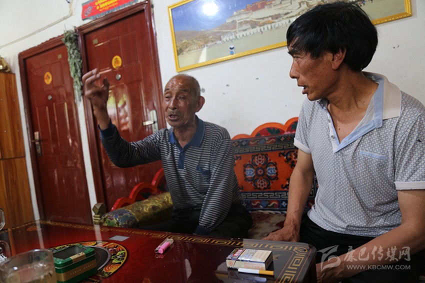 楊高清老人(左)在講述當年的情景。