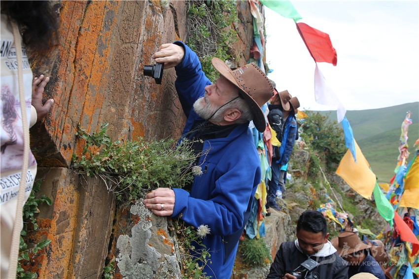 再次來到石渠的四川大學(xué)中國藏學(xué)研究所教授、中國巖畫學(xué)會副會長李永憲說,巖畫發(fā)掘?qū)ξ覀兘裉靵碚f不僅能提供圖像化、圖語化、圖形化的信息,它更是一種不可移動的歷史,可以為我們了解早期藏民族生產(chǎn)生活及文化發(fā)展提供一些信息。早期居住在這里的人們用以石為主的形式來刻畫圖像、記載歷史、表現(xiàn)精神需求的這個習(xí)俗,所以作為石刻藝術(shù)王國的石渠在這點上非常有意義,它讓我們記住了一個民族的傳統(tǒng)的藝術(shù)形式是如何一脈相承的。