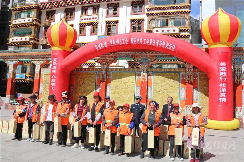 本網(wǎng)訊 9月5日下午,工會(huì)四大品牌活動(dòng)之一“喜波勒雄·夏送清涼”慰問活動(dòng)在康定市情歌廣場(chǎng)舉行,州總工會(huì)、康定市總工會(huì)聯(lián)合為環(huán)衛(wèi)工人、值勤民警等一線職工送去清涼禮包共計(jì)490份,并向他們表達(dá)敬意和關(guān)懷。