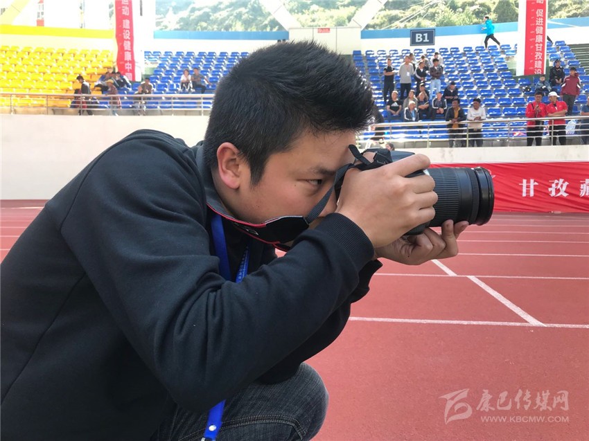本網(wǎng)記者在州運會現(xiàn)場采訪。(照片由本網(wǎng)走轉(zhuǎn)改小分隊和李婭妮、劉小兵提供)