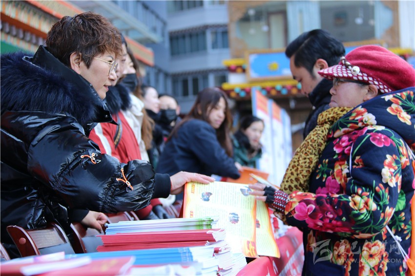 活動(dòng)現(xiàn)場(chǎng),工作人員為市民發(fā)放民族團(tuán)結(jié)進(jìn)步宣傳品、民族團(tuán)結(jié)進(jìn)步藏漢雙語(yǔ)宣傳教育讀本、宣傳畫(huà)、宣傳折頁(yè)、宣傳掛歷、《中國(guó)民族報(bào)》甘孜州民族團(tuán)結(jié)???、《民族》雜志甘孜州民族團(tuán)結(jié)專刊等各類宣傳資料9800余份(本),擺放展板30個(gè)。來(lái)自丹巴縣的仁真說(shuō):”現(xiàn)在的幸福生活離不開(kāi)偉大的中國(guó)共產(chǎn)黨的領(lǐng)導(dǎo),也離不開(kāi)全國(guó)各族人民共同團(tuán)結(jié)奮斗、共同繁榮發(fā)展?!?/p>