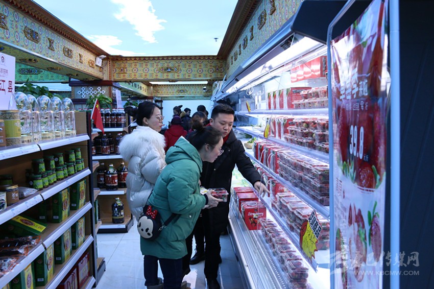 “石渠草莓、理塘番茄、九龍茶葉、康定青稞餅······”12月31日,康定市圣潔甘孜扶貧超市內(nèi)人山人海,當天“四川扶貧”產(chǎn)品迎春年貨大集甘孜分會場活動在此拉開帷幕。來自全州18個縣(市)157家企業(yè)、合作社生產(chǎn)的723種“圣潔甘孜”優(yōu)質(zhì)農(nóng)特扶貧產(chǎn)品吸引眾多市民前來購買。