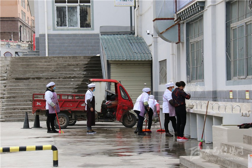 記者了解到,康定市民族中學實行半封閉式管理,走讀學生早上到校后,直到晚上放學才能出校門,午餐和晚餐都在學校就餐,學校食堂外也安裝了紅外線測溫儀。中午12點,原本是放學吃飯時間,該校初三學生沒有像往常一樣集中趕往食堂吃飯,而是由老師帶隊分批次、有組織的分散就餐,杜絕打堆吃飯,減少不必要的聚集。餐后,食堂工作人員又將食堂地板反復清掃,之后統(tǒng)一進行消毒。