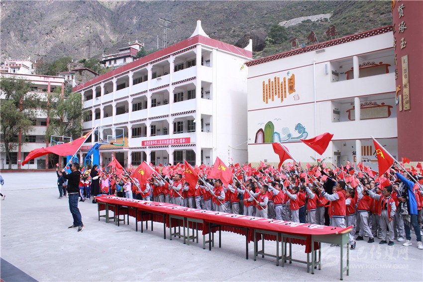 圖為丹巴縣川口寄宿制學(xué)校正在開(kāi)展愛(ài)國(guó)主義教育活動(dòng)。 丹宣 圖