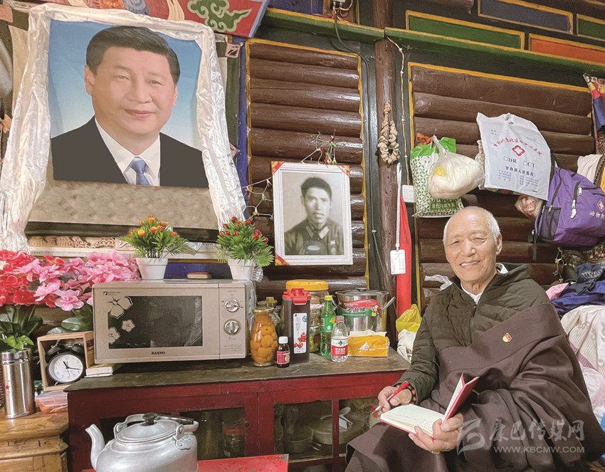 “這本上世紀(jì)60年代印的藏文版毛主席語(yǔ)錄,我不知道翻了多少遍,都快要翻爛了?!比A發(fā)蒼顏,中氣十足的多加對(duì)記者笑言:“我從小是‘娃子’,根本認(rèn)不到字,不管是藏漢文;但我現(xiàn)在能流利地讀寫(xiě)藏文,全是藏民團(tuán)里會(huì)藏文的漢族戰(zhàn)友教的;更有意思的是,我的漢話是藏民團(tuán)里會(huì)說(shuō)四川話的藏族戰(zhàn)友教的!”