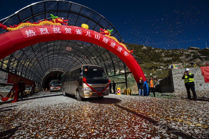 郵車安全駛過雀兒山隧道。本網記者 馬建華 攝