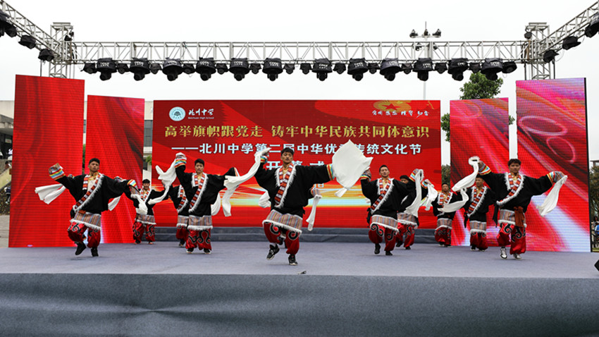 甘孜州籍學生在北川中學中華優(yōu)秀傳統(tǒng)文化節(jié)上表演節(jié)目。