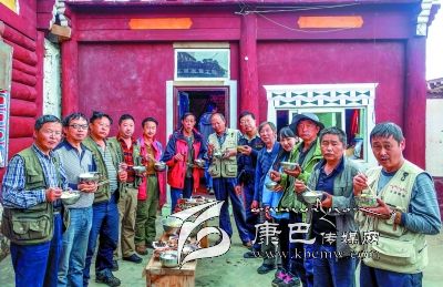 ——在甘孜縣饅頭山下來后,采風(fēng)隊(duì)員又來到了斯俄鄉(xiāng)“十八軍窯洞群”, 數(shù)百個(gè)錯(cuò)落有致的窯洞,被瘋長的雜草包圍?;氖徠鄾龅母G洞正向世人講述著60多年前搶修甘孜機(jī)場的艱難故事。該窯洞群遺址在第三次全國文物普查實(shí)地調(diào)查工作中,被稱為最具價(jià)值的近現(xiàn)代革命遺址。望著眼前一排排窯洞以及山頂上那九座無名女兵墳塋,采風(fēng)隊(duì)員們感慨萬千,當(dāng)年為進(jìn)藏部隊(duì)空投物資而修建的甘孜機(jī)場雖已成為歷史。但十八軍以驚人的速度建成了當(dāng)時(shí)世界上海拔最高的飛機(jī)場,在窯洞群遺址處留下了許許多多可歌可泣的故事讓人感動。鏡頭中留下了“遺址”,留存了當(dāng)年甘孜和平解放后的片斷史詩,也留下了采風(fēng)隊(duì)員為緬懷先烈而莊嚴(yán)的合影。