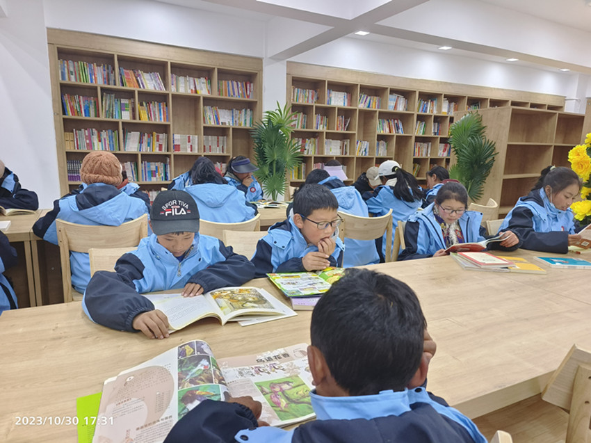 石渠縣學(xué)生在新的圖書館看書。