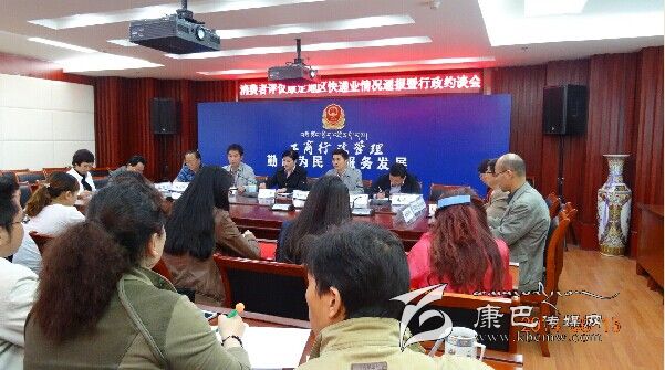 本網(wǎng)訊(桂花澤姆 文/圖)8月15日,甘孜州消委會(huì)、州工商局、州郵政管理局聯(lián)合召開(kāi)“消費(fèi)者評(píng)議康定地區(qū)快遞服務(wù)行業(yè)調(diào)查活動(dòng)”情況通報(bào)暨行政約談會(huì)。州財(cái)政局、州發(fā)改委、甘孜日?qǐng)?bào)社、州電視臺(tái)等八家消委會(huì)成員單位,康定地區(qū)申通、中通等八家快遞企業(yè)參加了會(huì)議。
