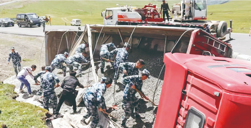 官兵營救側(cè)翻車輛。