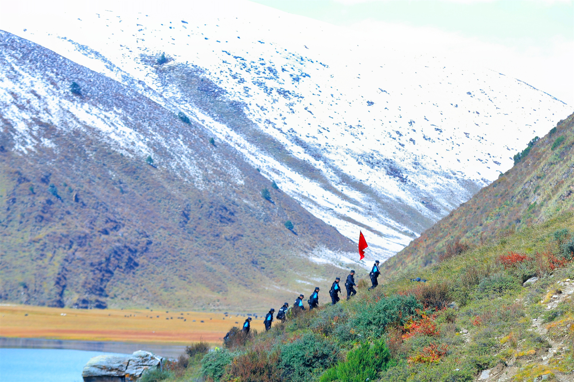 圖為公安干警正在巡護。