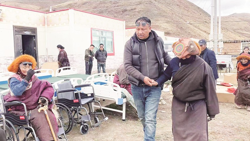 普布澤仁攙扶老人。