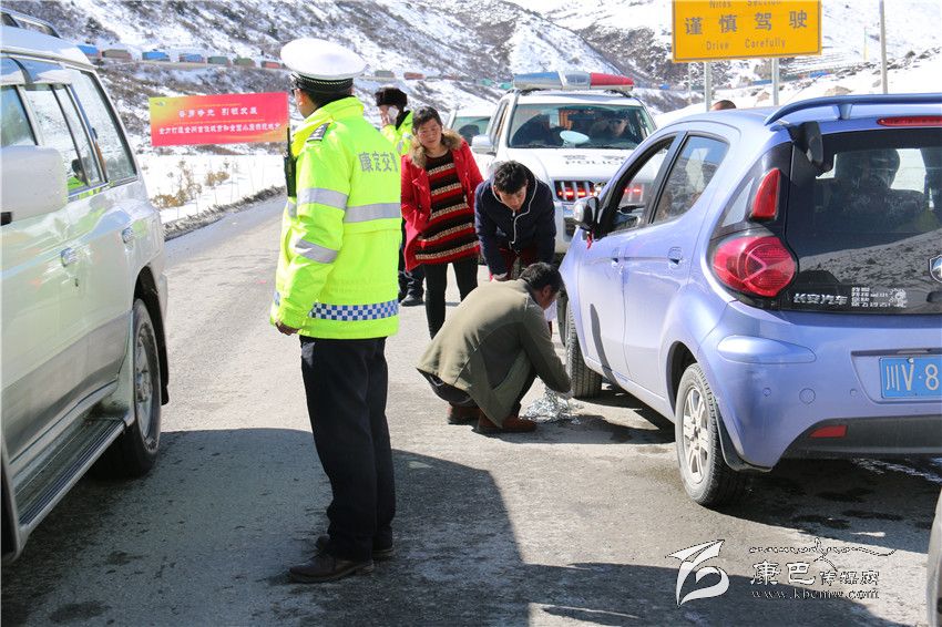 在現(xiàn)場(chǎng),記者看到有很多車從折多山通過(guò),結(jié)冰的路面使車輛打滑,不遵守交通規(guī)則的“魯莽司機(jī)”硬塞硬擠造成道路堵車,給道路疏通工作帶來(lái)了很大的不便。“26日以后,天氣逐漸好轉(zhuǎn),白天日照后冰雪開始融化,但是下午4點(diǎn)左右,溫度開始下降,道路上的雪水又結(jié)成冰,車輛根本沒法前行。”據(jù)現(xiàn)場(chǎng)交警介紹,從29日開始,折多山恢復(fù)了對(duì)大車的通行,造成車流量增大,車輛只能緩慢行駛,造成擁堵。加之大雪過(guò)后,路面結(jié)冰嚴(yán)重,上山的車輛大多沒有防滑鏈或者是到了結(jié)冰路段才停在路邊掛防滑鏈,造成車輛緩行擁堵。在行駛過(guò)程中,不少司機(jī)更是為能快速通行而違法超車,以至折多山路段一度交通中斷。