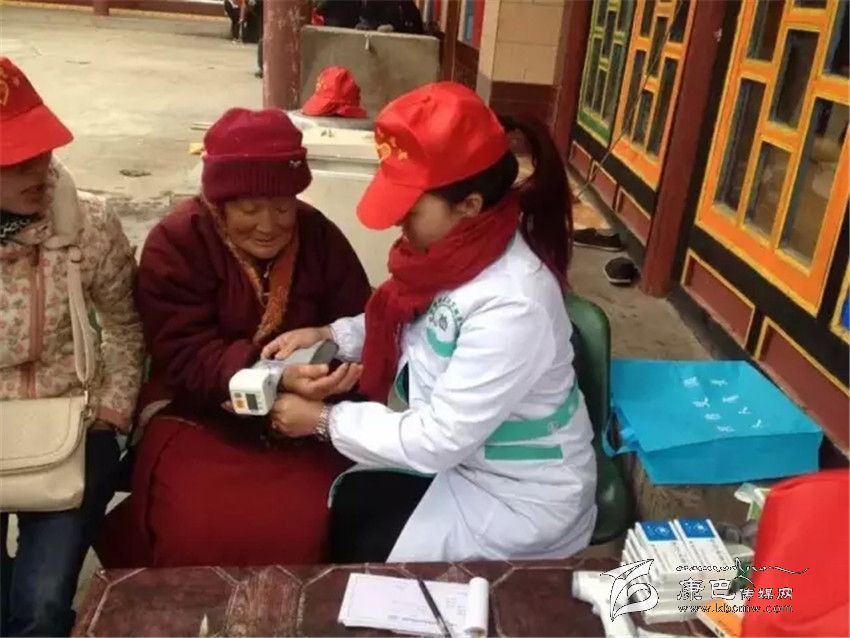 甘孜青年志愿者服務(wù)隊安初為老人做健康體檢,五年如一日,堅持,無悔。