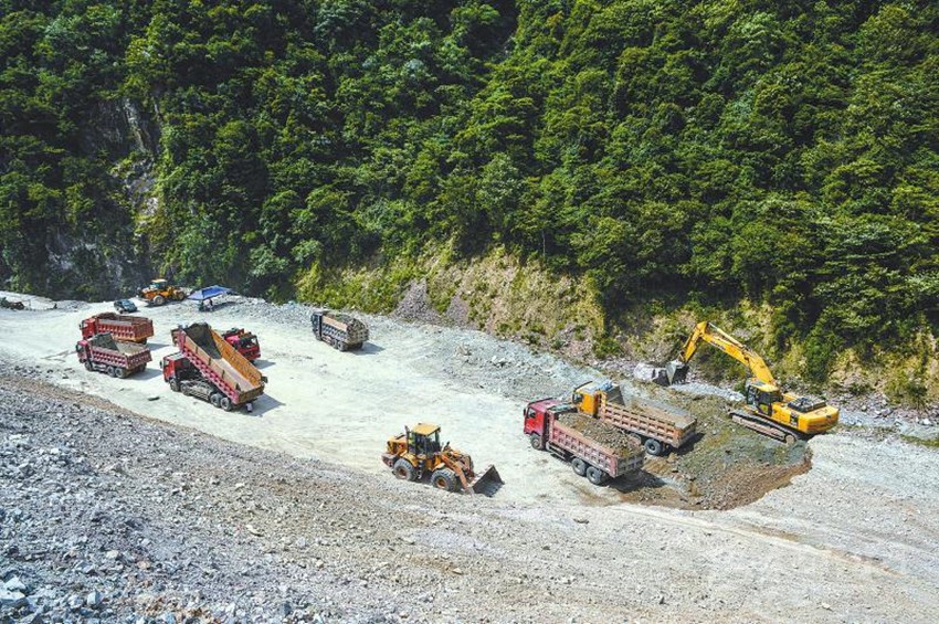 溯流而上,沿國(guó)道318線往西,在建的雅康高速不時(shí)映入眼簾,幾個(gè)巨型的渣土堆放體或覆蓋薄膜或已植草興綠,不時(shí)有裝載渣土的貨車迎面駛過(guò)。
