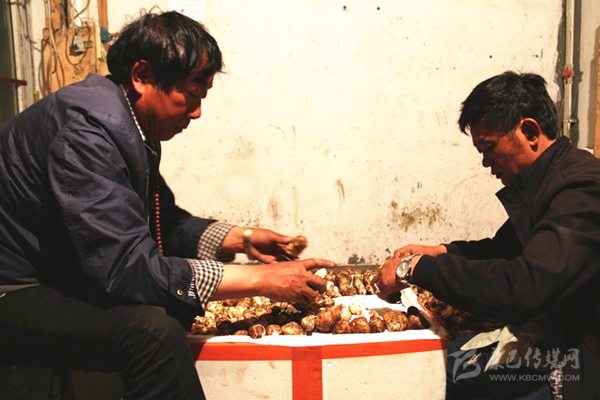 收購商挑選精品松茸。