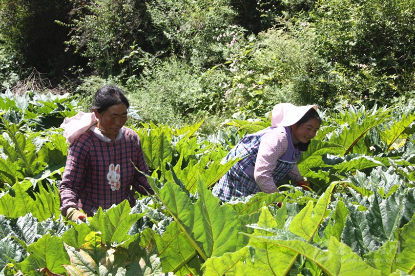 8月5日,康定市雅拉鄉(xiāng)雀公村,一場大雨之后,天空如洗,青山如玉??刀ㄊ腥腹兴幉姆N植農(nóng)民專業(yè)合作社的負責(zé)人梁發(fā)林和陳繼平來到藥材種植基地,查看藥材生長情況。茂密的大黃已經(jīng)齊腰深了,滿目蔥翠?!斑@段時間雨水比較集中,雜草叢生,害蟲滋生,要增加人手和請教農(nóng)科所的專家解決病蟲害的問題。”梁發(fā)林和陳繼平商量,藥材種植已經(jīng)到了加強管理的關(guān)鍵時刻了,不能掉以輕心。