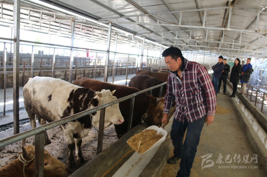 “白巖子村有33戶貧困戶,收入來源單一,如何找到一條可持續(xù)發(fā)展致富的產(chǎn)業(yè)?我和羅萬清、白巖子村支部書記沙瑪十一商量,發(fā)展養(yǎng)殖業(yè)有很好的前景,于是,我們先后4次到廣元、眉山、重慶、內(nèi)蒙、云南等地考察,內(nèi)蒙張北市場西門塔爾肉牛日成交量在200頭以上,一年便可出欄,而且重達1000多斤,如果養(yǎng)殖一年半可達1500斤,一頭牛就可賣一兩萬元。在銷售方面,重慶豐都光明食品貿(mào)易有限公司每天需求量在100頭以上,還可簽訂長期上門收購合同,根本不用擔(dān)心市場銷路?!蓖蹰L明說,煙袋鎮(zhèn)山草、桔桿、豆草、麥草等飼草資源相當豐富,養(yǎng)殖西門塔爾肉牛的優(yōu)勢得天獨厚。2016年8月,合作社成立,白巖子村33戶貧困戶以土地折資、小額信貸等方式入股,本金由合作社歸還,村民零風(fēng)險,還可以分紅?;亟ǔ珊?,合作社一次性購買了208頭西門塔爾肉牛。目前,中國的牛肉40%依靠進口,而內(nèi)蒙張北市場又可以源源不斷地提供種源。正是看中了西門塔爾肉牛的巨大市場潛力,合作社建設(shè)了3800平方米的養(yǎng)殖基地。100個平方米的圈舍可養(yǎng)30頭肉牛。合作社準備在3年內(nèi),西門塔爾肉牛養(yǎng)殖規(guī)模達到1000頭以上,總產(chǎn)值達到1500萬元,對村民的帶動作用將更加明顯,成為村民增收致富的主要支柱產(chǎn)業(yè)。今年6月,33戶貧困戶喜笑顏開,合作社兌現(xiàn)了承諾,每戶村民分紅4000元,共計分紅132000元?!叭馀;旧铣鰴诹?,存量不多,等我們的養(yǎng)殖基地全部建成后,我們還準備給張北市場簽訂購買合同,爭取再引進數(shù)百頭肉牛。”王長明信心滿滿地說,首批肉牛出欄,在養(yǎng)殖技術(shù)和管理方面,合作社已經(jīng)積累了一定的經(jīng)驗,具備了進一步擴大養(yǎng)殖規(guī)模的技術(shù)和條件。