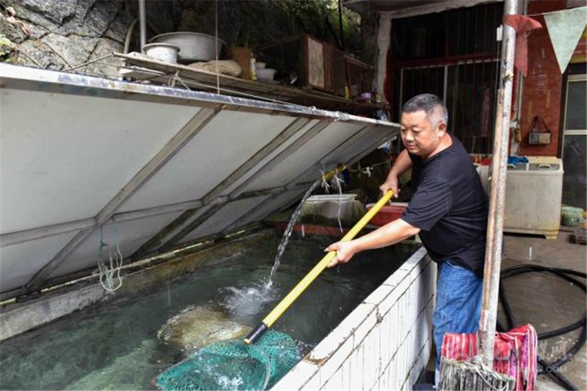 在各方幫扶下,2015年,朱國(guó)富借了10多萬元,在家門口開起了“黑灣魚莊”。農(nóng)家樂開起來了,日子又開始紅火起來。