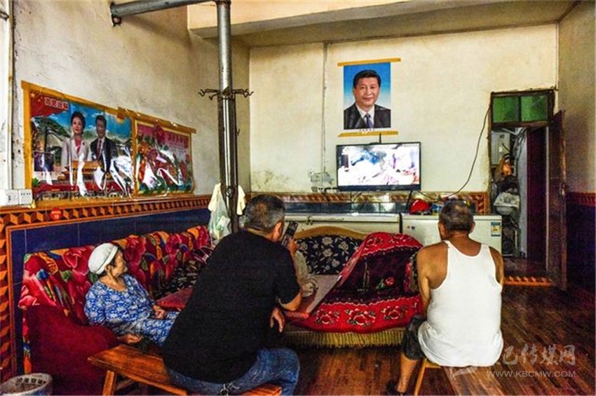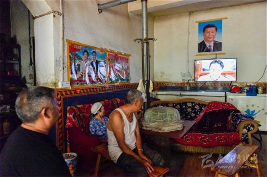沒客人時(shí),朱國(guó)富陪81歲的父親和80歲的母親看電視。張可凡攝。