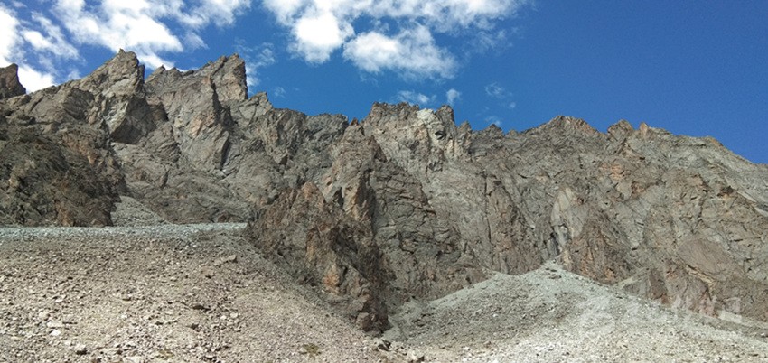 劉剛告訴記者,貝母山腳的長(zhǎng)海子(湖泊名)海拔大概在4900米左右,可就是山腳到山頂這短短的800米,兩人足足爬了一個(gè)半小時(shí)?!疤貏e是離山頂200米的地方,幾乎是懸崖絕壁,二三十米的距離我們走了二十多分鐘,下次去,一定得帶上保險(xiǎn)繩?!?/p>
