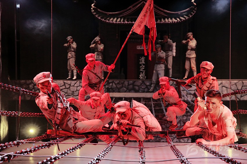 圖為紅軍飛奪瀘定橋紀念館原創(chuàng)實景劇《飛奪瀘定橋》劇照。本網資料庫圖