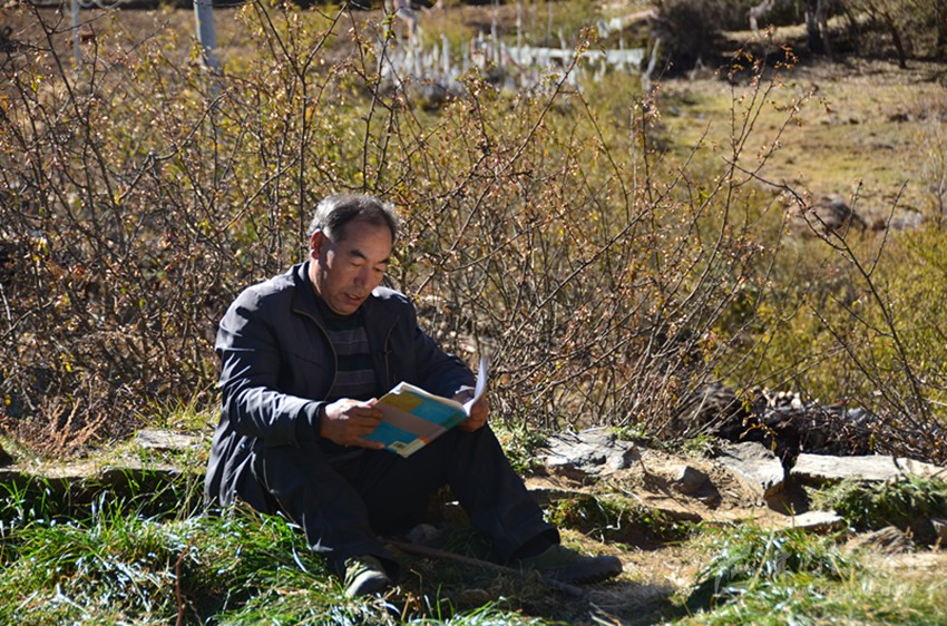 那一年,教室的過道里燃起熊熊的炭火,孩子們坐在溫暖的教室里,那郎朗的讀書聲久久縈繞在藏寨的上空。就這樣,復(fù)式班級的教學(xué)工作他一干就是十余年,后來,村里的兩位高中畢業(yè)生也走進(jìn)長納村小,長納村小的師資力量得到了補充。那一年,長納村小成立第一個教研組,阿布里擔(dān)任語文、數(shù)學(xué)教研組組長,在教研會議上,他將自己的教學(xué)經(jīng)驗無私傳授給兩位代課教師。