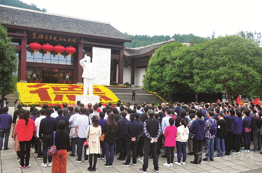 與會(huì)嘉賓瞻仰朱德同志漢白玉像。