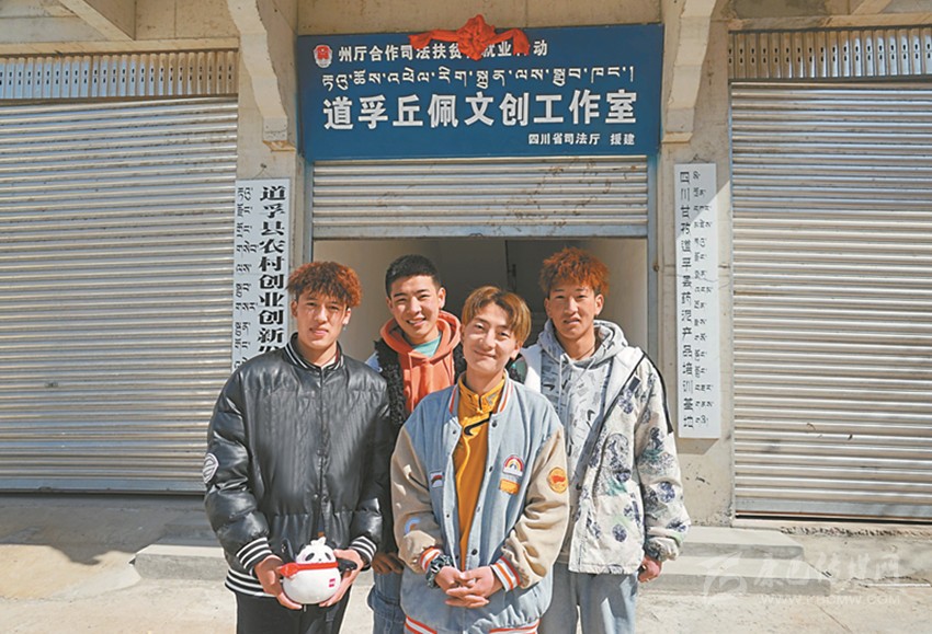 學(xué)習(xí)彩繪后,在省司法廳援助下,邛批和伙伴們成立了丘佩文創(chuàng)工作室。