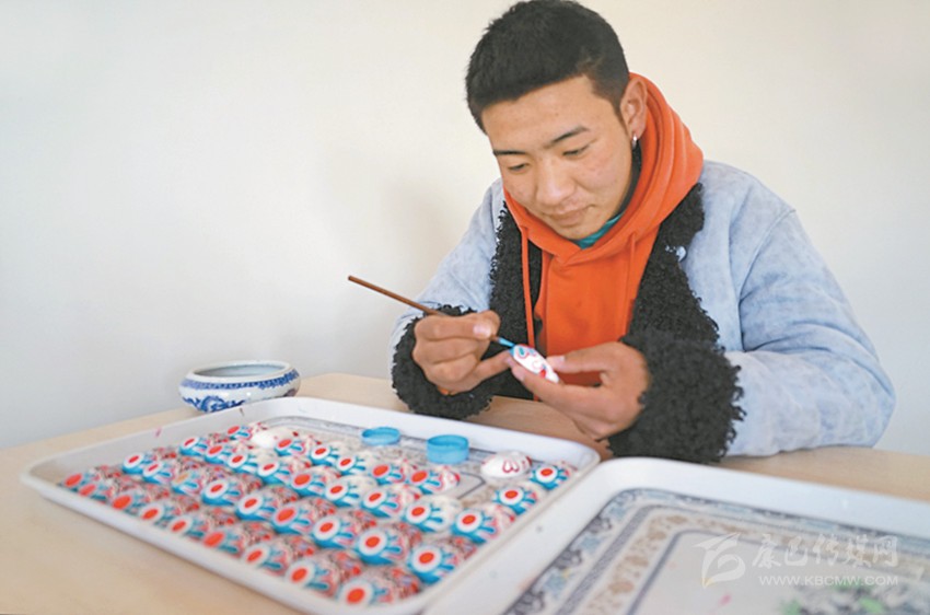 本著自主自愿的原則,教學(xué)班結(jié)束后,65名藏族青年主動加入扶貧彩繪實(shí)訓(xùn)班,成為項目的第一批學(xué)員。“實(shí)訓(xùn)期間不需要交任何費(fèi)用,還包吃住。我對畫京劇臉譜很有興趣,我們第一個月學(xué)習(xí)繪畫基本功,第二個月開始,根據(jù)成品質(zhì)量,就可以計件得酬勞,學(xué)習(xí)期間我每月能掙500多元?!壁雠f。