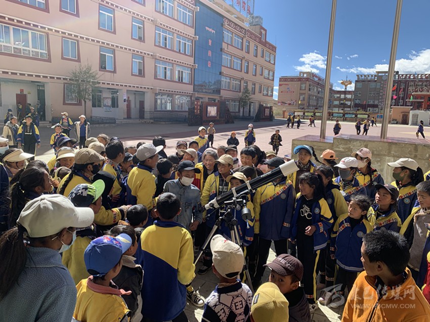 “我看到木星了!”日前,在理塘縣第四完全小學的操場上,“筑夢星空”首屆天文社團成員、六年級三班的格絨拉姆在杭州市錢塘區(qū)新灣小學支教老師王建煜的指導下,通過天文望遠鏡看到木星時,不由得大聲叫了起來。