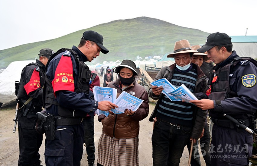 回到集中居住點(diǎn),登孜羅布和同事又來(lái)到蟲草交易市場(chǎng),向群眾和商販宣傳反電信詐騙的知識(shí),提醒大家守好錢袋子,不要讓挖蟲草辛辛苦苦掙來(lái)的錢被騙走了。民警們還對(duì)小賣部進(jìn)行檢查,查看有沒有銷售過(guò)期或假冒偽劣的生產(chǎn)生活用品以及管制刀具等違禁品。傍晚時(shí)分,居住點(diǎn)里炊煙裊裊,勞碌了一天的群眾開始生火做飯,民警們又要開展巡邏,提醒大家注意用火安全。夜幕降臨,當(dāng)大家進(jìn)入夢(mèng)鄉(xiāng)的時(shí)候,登孜羅布和他的同事仍然值守在崗位上,守護(hù)居住點(diǎn)夜晚的安寧。