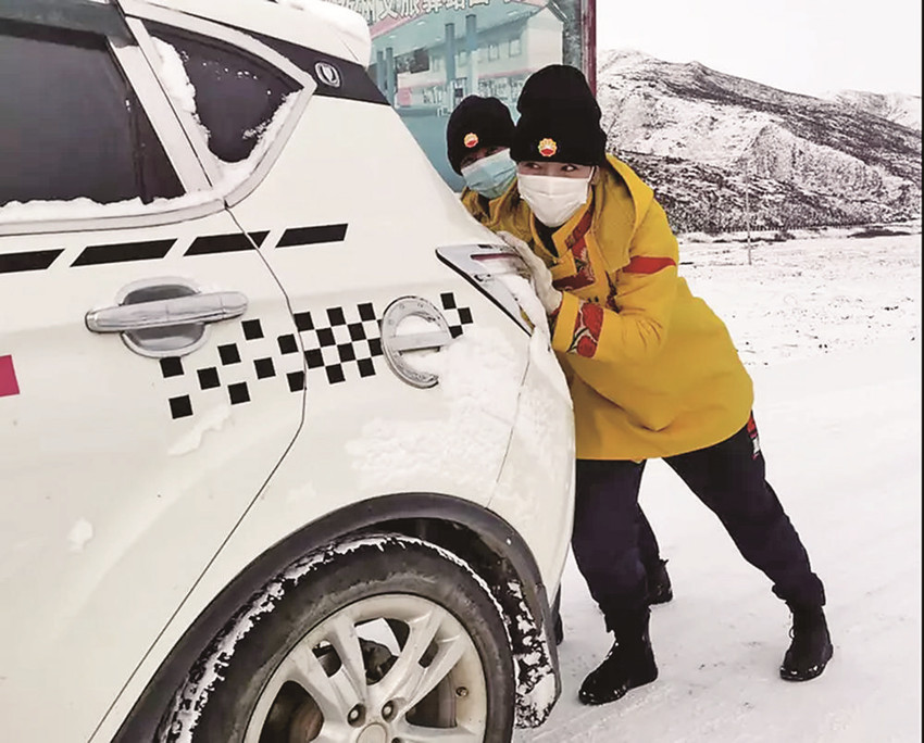 在安撫好客戶(hù)后,澤仁娜姆連夜敲開(kāi)當(dāng)?shù)嘏沙鏊拈T(mén),開(kāi)具好散裝汽油灌裝證明,帶上裝滿(mǎn)20升汽油的油桶、氧氣袋和治療高原反應(yīng)藥品及食品,冒大雪、頂嚴(yán)寒,第一時(shí)間前往救援現(xiàn)場(chǎng)。經(jīng)過(guò)兩個(gè)多小時(shí)的驅(qū)車(chē)跋涉,終于找到求救人員,并將越野車(chē)引領(lǐng)到自己的加油站休整。