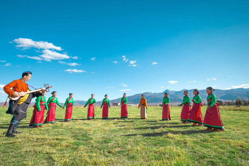 澤仁彭措是位“半路出家”的鄉(xiāng)村音樂教師。“小時候就對音樂特別感興趣,但那時候家里沒條件,很難有機(jī)會系統(tǒng)地學(xué)習(xí)音樂知識?!遍L大后,澤仁彭措成為一名教師。工作之余,他始終保持著對音樂的熱愛,自學(xué)了札木聶和弦子等樂器。
