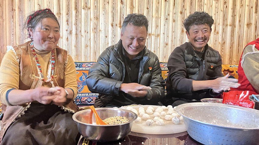 這邊拉著家常,那邊一碗碗熱氣騰騰的湯圓端上了桌。席間,朱文秀品嘗著這象征“團(tuán)圓”的湯圓,還不忘關(guān)心著格絨家的三女兒甲初拉姆的學(xué)習(xí)、就業(yè)意愿等情況,勉勵(lì)她要好好學(xué)習(xí),將來更好地建設(shè)祖國。